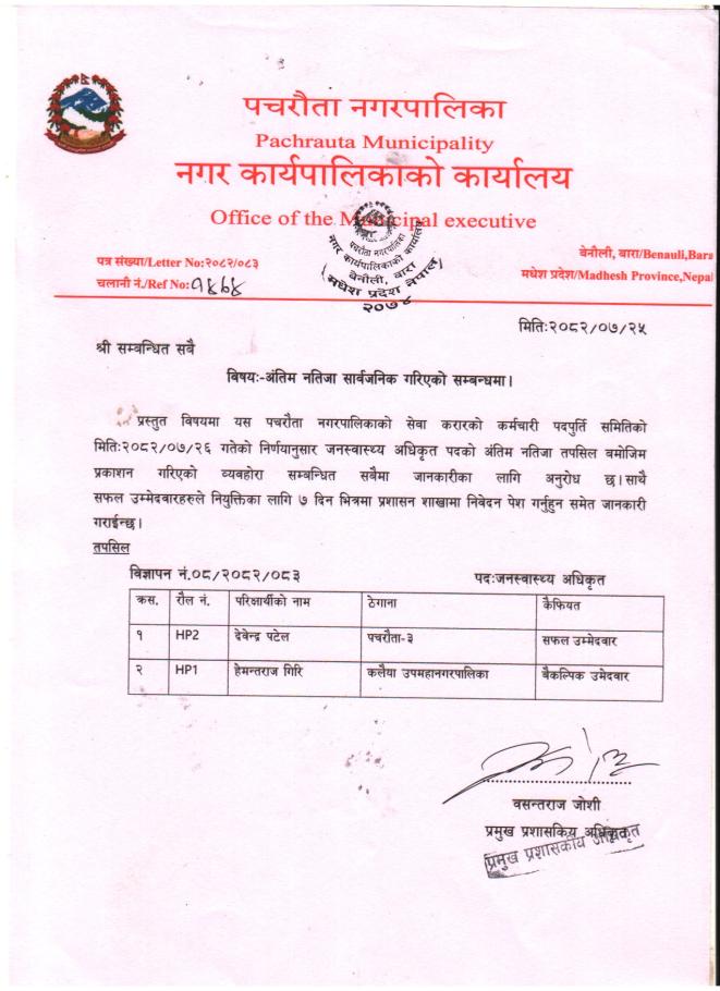अंतिम नतिजा सार्वजनिक गरिएको सम्बन्धमा सूचना!!