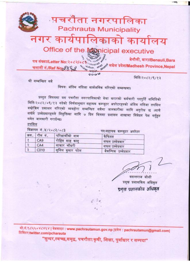 अन्तिम नतिजा प्रकाशन सम्बन्धमम सूचना!!!