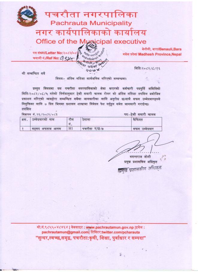 अन्तिम नतिजा प्रकाशन सम्बन्धि सूचना