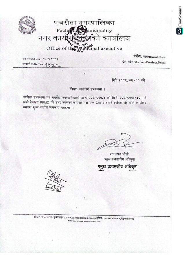 सार्वजनिक खरिद/बोलपत्र सूचना