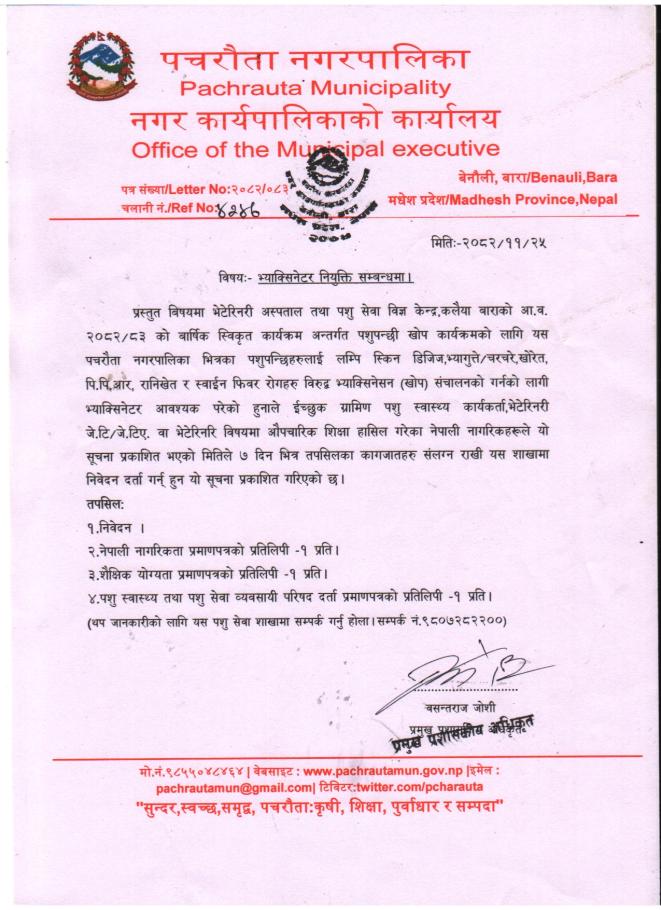 भ्याक्सिनेटर नियुक्त सम्बन्धि सूचना!!!