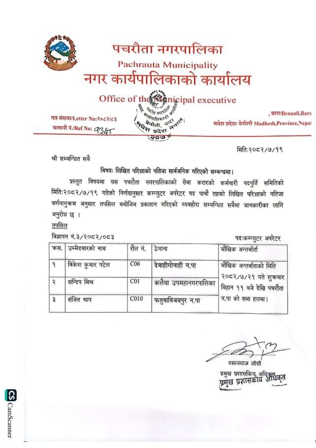 » लिखित परिक्षाको नतिजा सार्वजनिक गरिएको सम्बन्धमा सूचना!!!