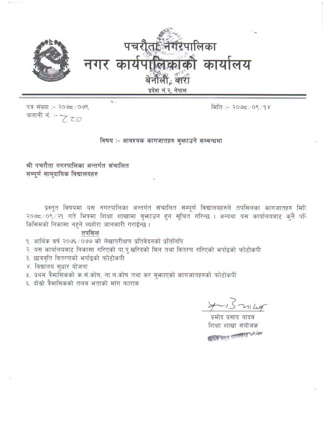 आवश्यक कागजात उपलब्ध गराउने बारे सूचना