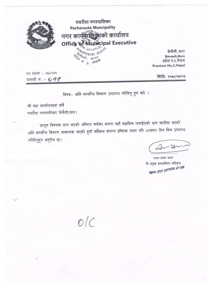 "सुन्दर, स्वच्छ, समृद्व, पचरौता:कृषी, शिक्षा, पुर्वाधार र सम्पदा"
