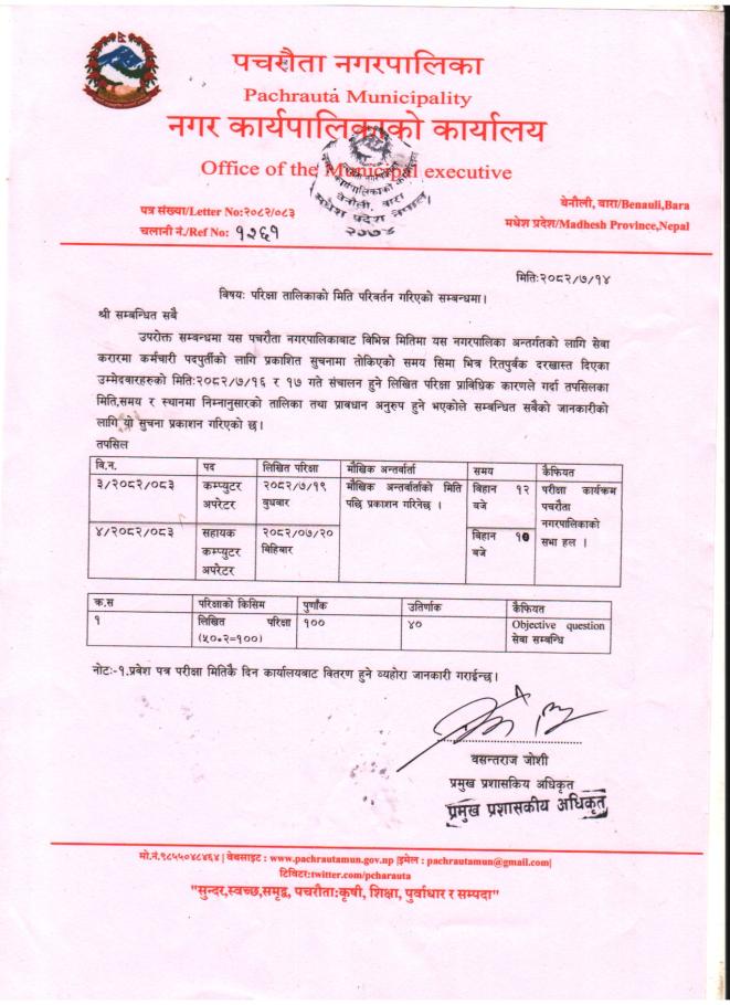 परिक्षा तालिकाको मिति परिवर्तन सम्बन्धमा सूचना