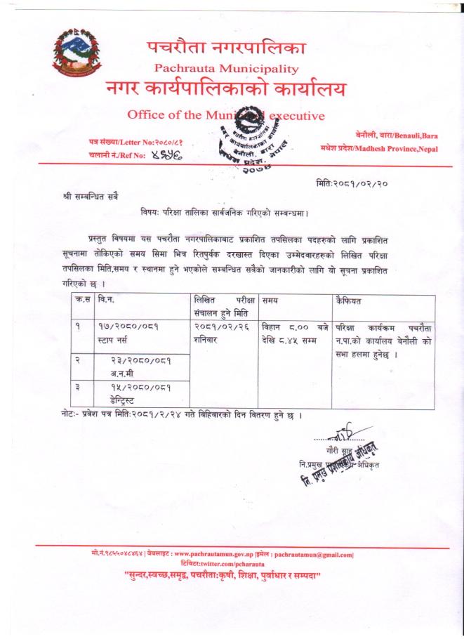परिक्षा तालिका सार्वजनिक गरिएको सम्बन्धमा सूचना!!!
