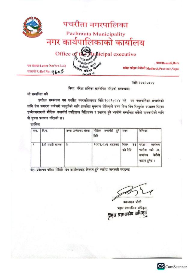 परिक्षा तालिका सार्वजनिक गरिएको सम्बन्धमा सूचना