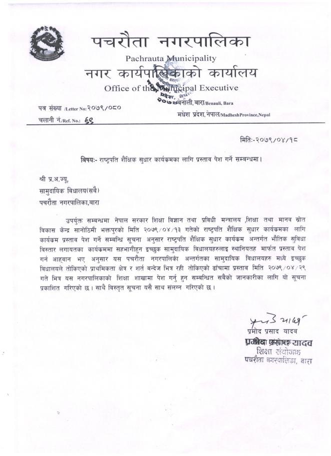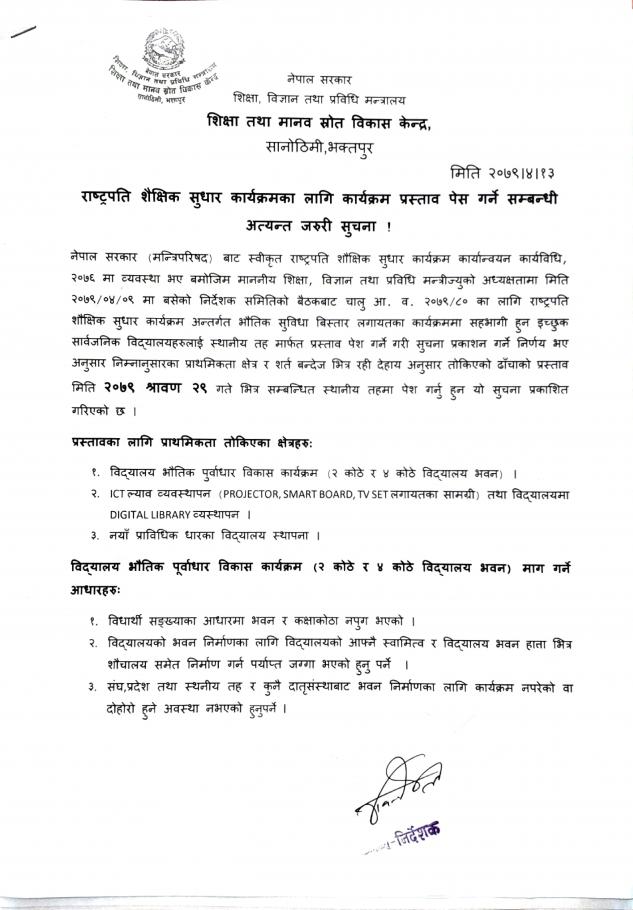 राष्ट्रपति शैक्षिक सुधार कार्यक्रमका लागि प्रस्ताव पेश गर्ने सम्बन्धी सूचना!!!