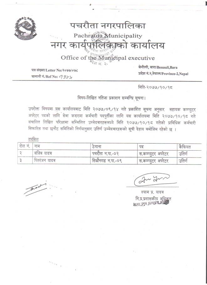 लिखित परिक्षाको नतिजा सम्बन्धमा