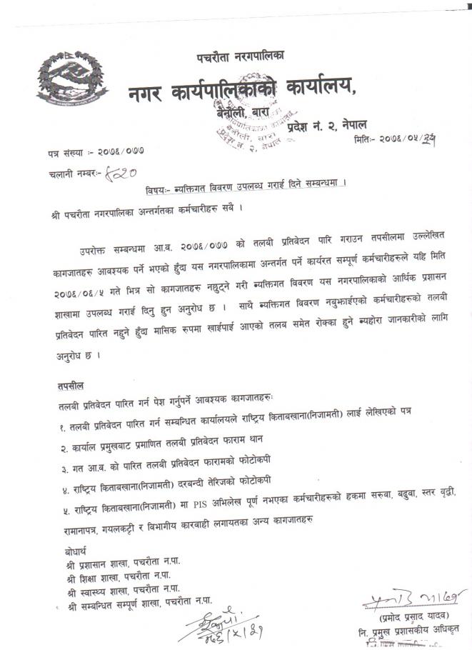 व्यक्तिगत विवरण उपलब्ध गराईदिने सम्बन्धमा ...