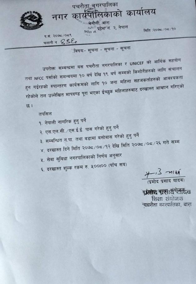"सुन्दर, स्वच्छ, समृद्व, पचरौता:कृषी, शिक्षा, पुर्वाधार र सम्पदा"