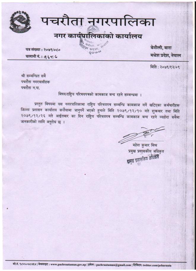 "सुन्दर, स्वच्छ, समृद्व, पचरौता:कृषी, शिक्षा, पुर्वाधार र सम्पदा"