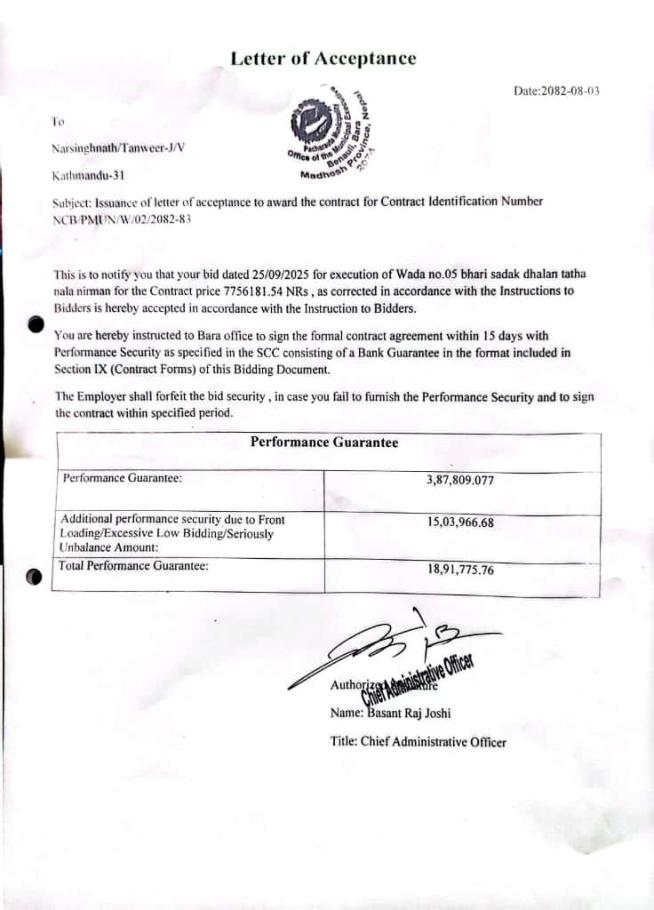 Letter of acceptance